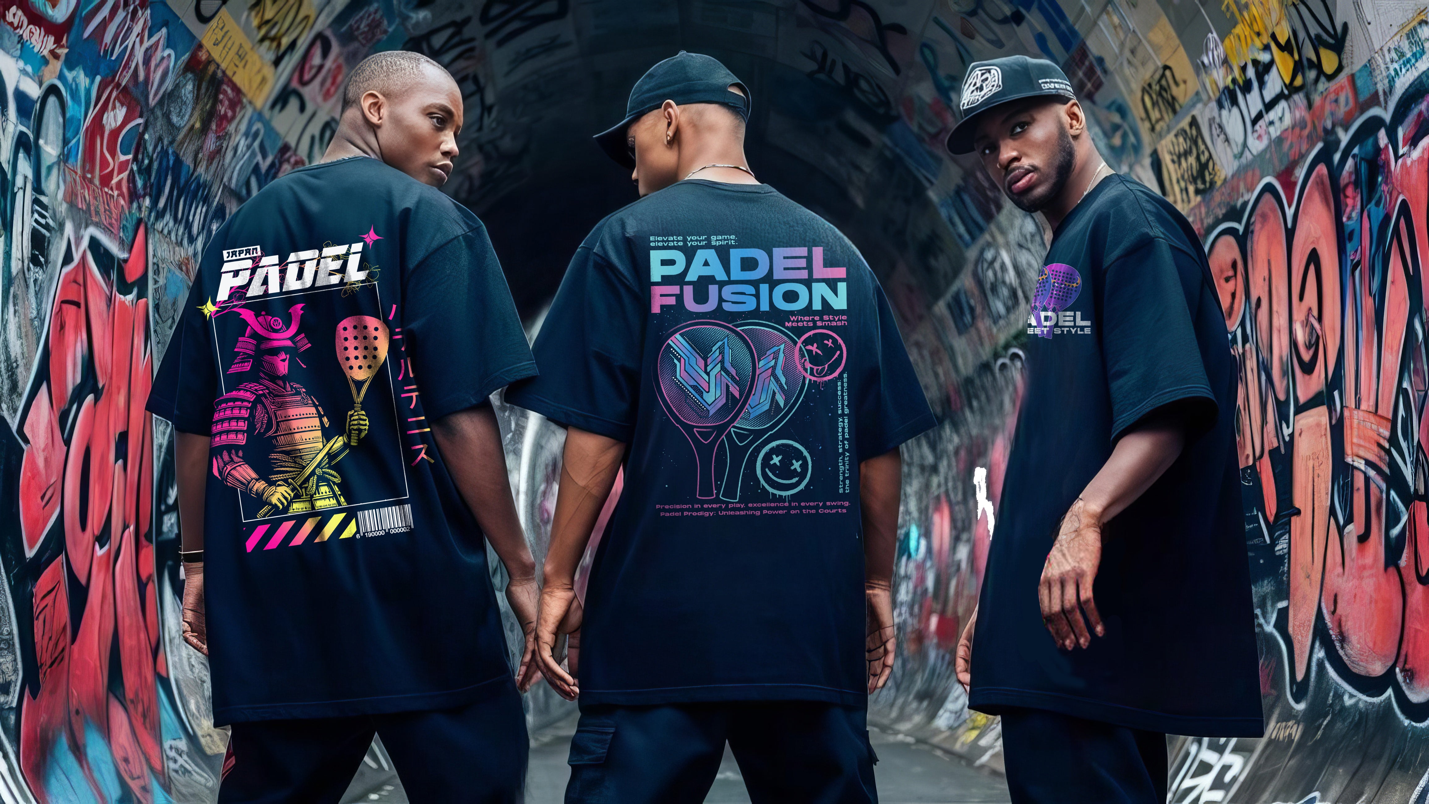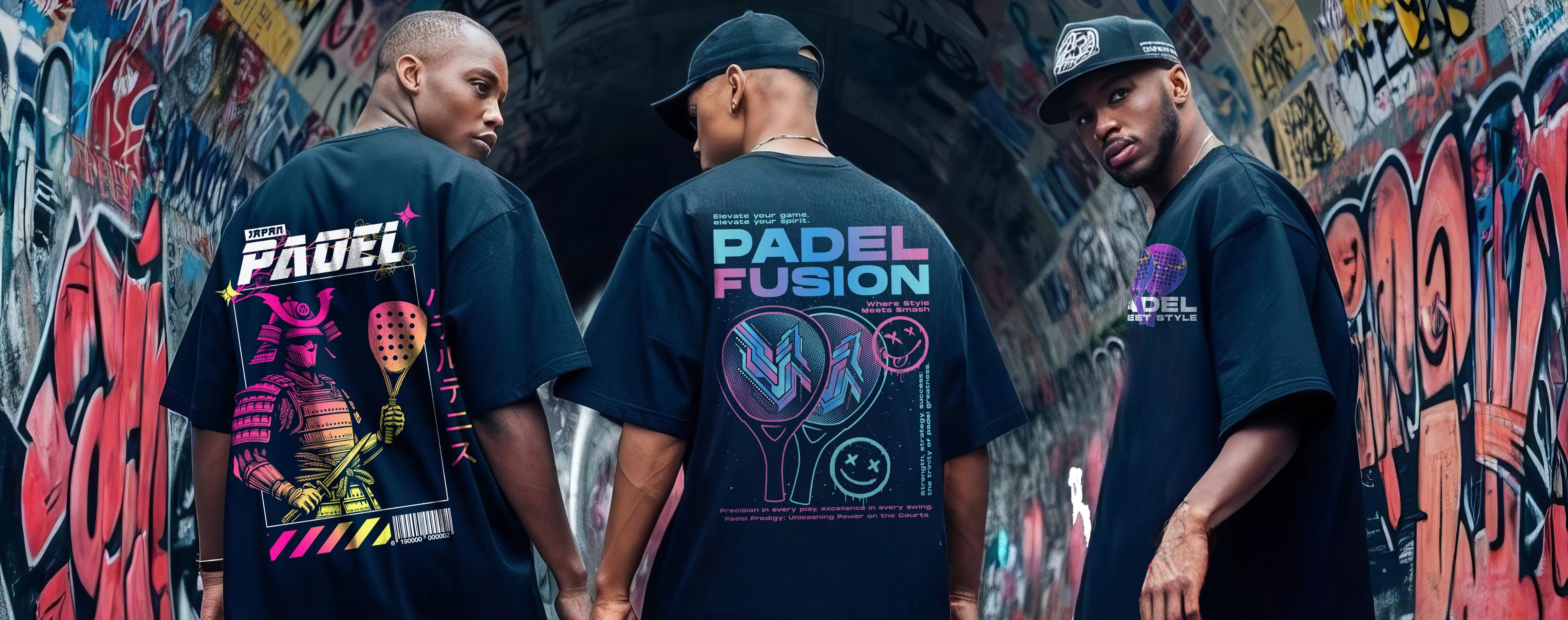 Lo stile street/urban, incrociato con colori accesi e richiami ai diversi elementi del padel rendono questa t-shirt un pezzo unico.
